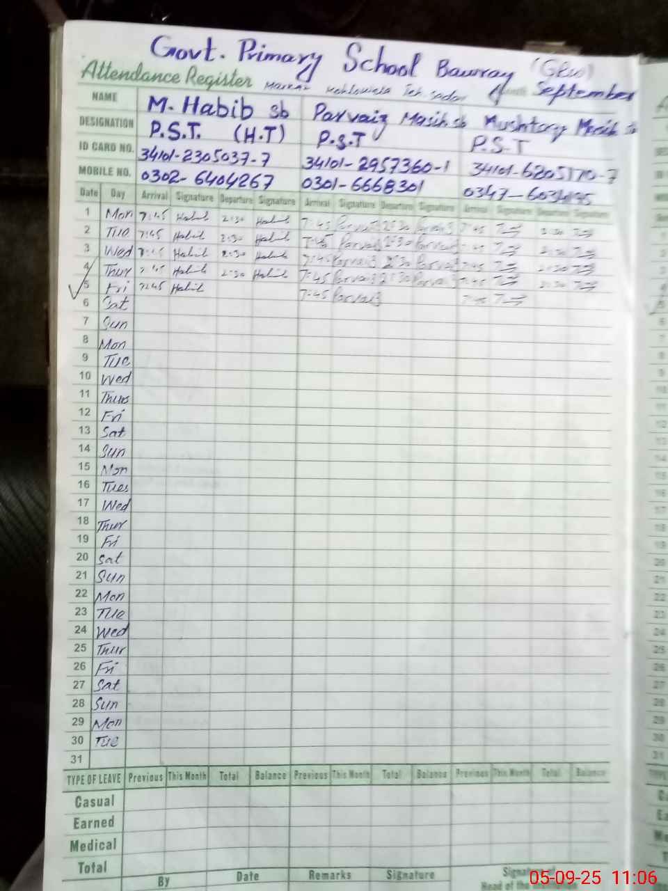 | Name: Mu**** Ha**** Designation: (School Headmaster's/Headmistress's) Head Teacher Phone/Cell Number: 03**** |