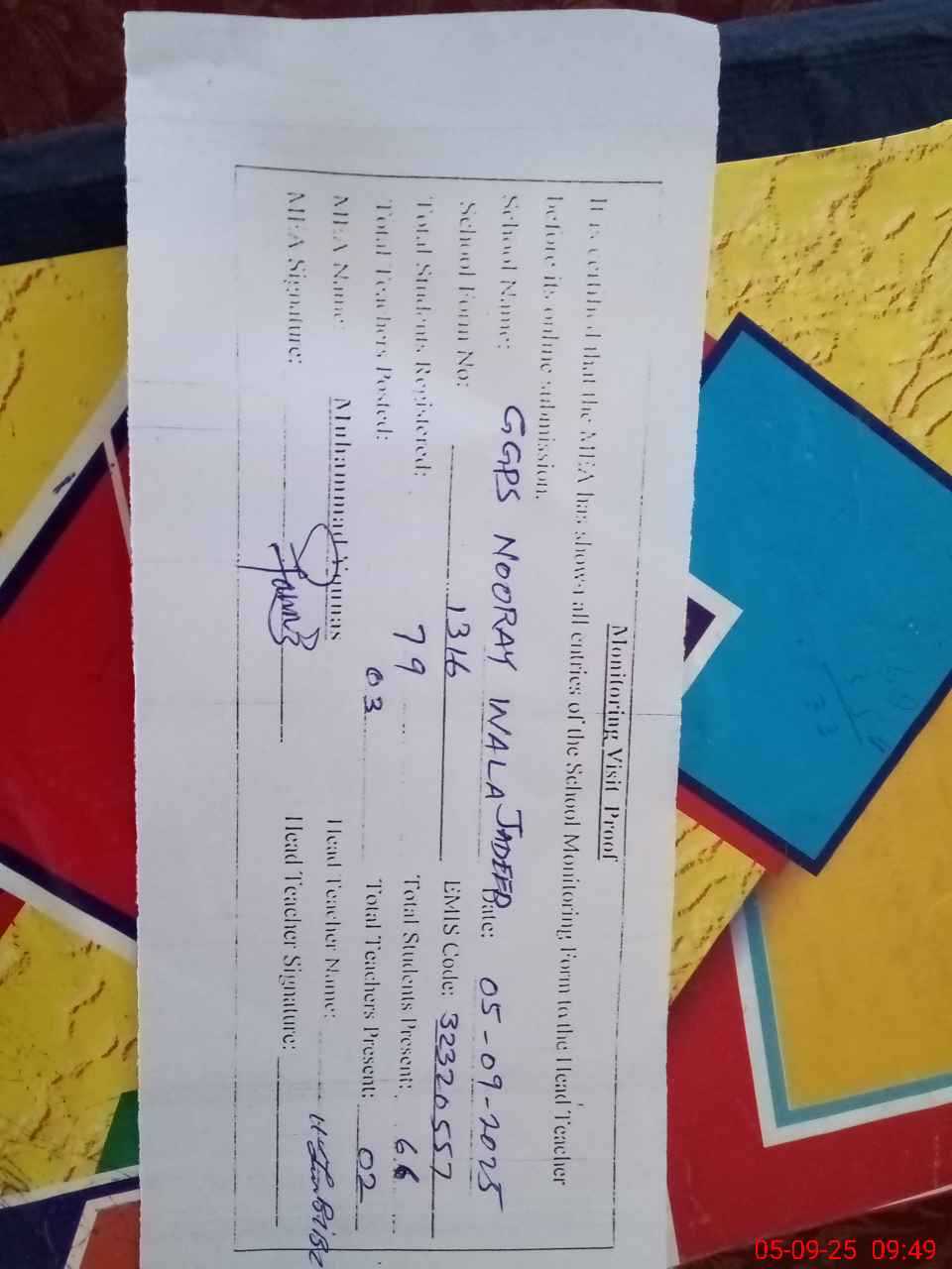 | EMIS Code: 32320557 | Name of School: GGPS NOORAY WALA JADEED | |||
