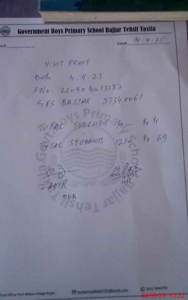 | EMIS Code: 37340061 | Name of School: GPS BAJJAR | |||