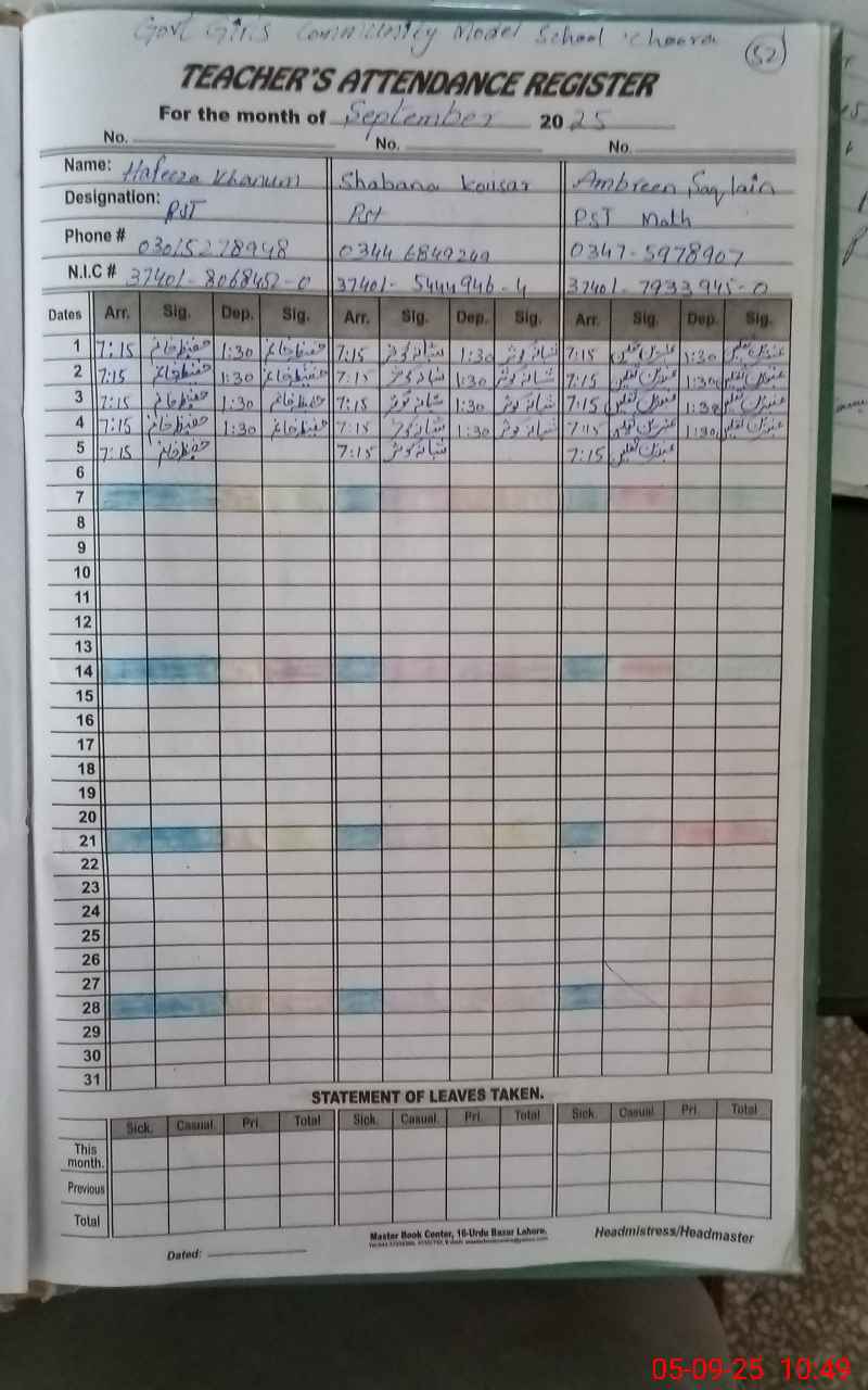 | Name: HA**** KH**** Designation: (School Headmaster's/Headmistress's) PST Phone/Cell Number: 03**** |