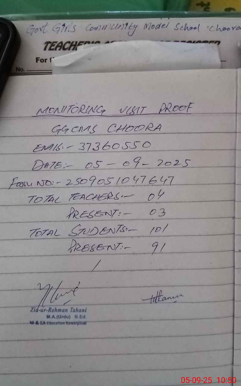 | EMIS Code: 37360550 | Name of School: GGCMS CHOORA | |||