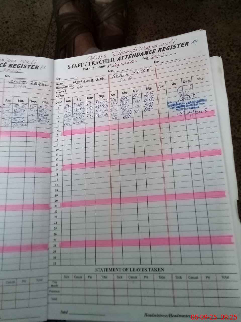 | Name: Sh**** Mu**** Designation: (School Headmaster's/Headmistress's) S HM Phone/Cell Number: 03**** |