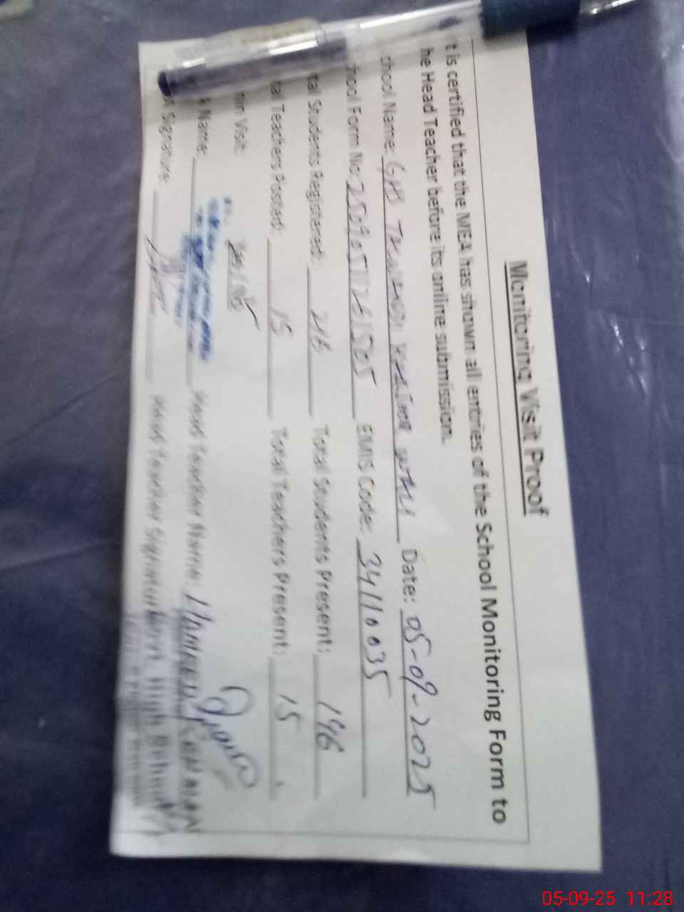 | Attendance Register | Head Teacher | MEA with School | Visit Proof |