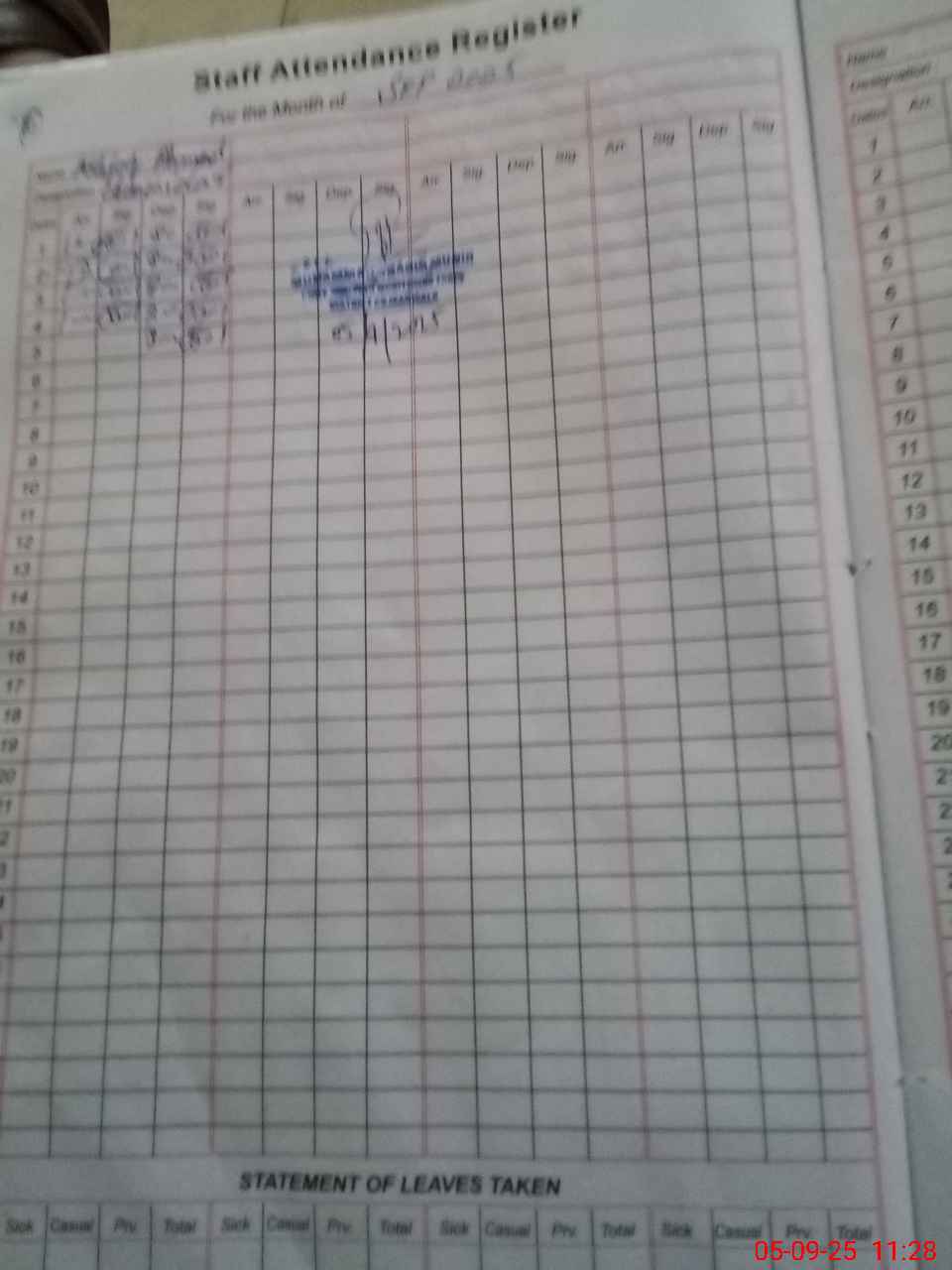 | CNIC | Full Name | Designation | R/C | Absence During Last Calender Month |