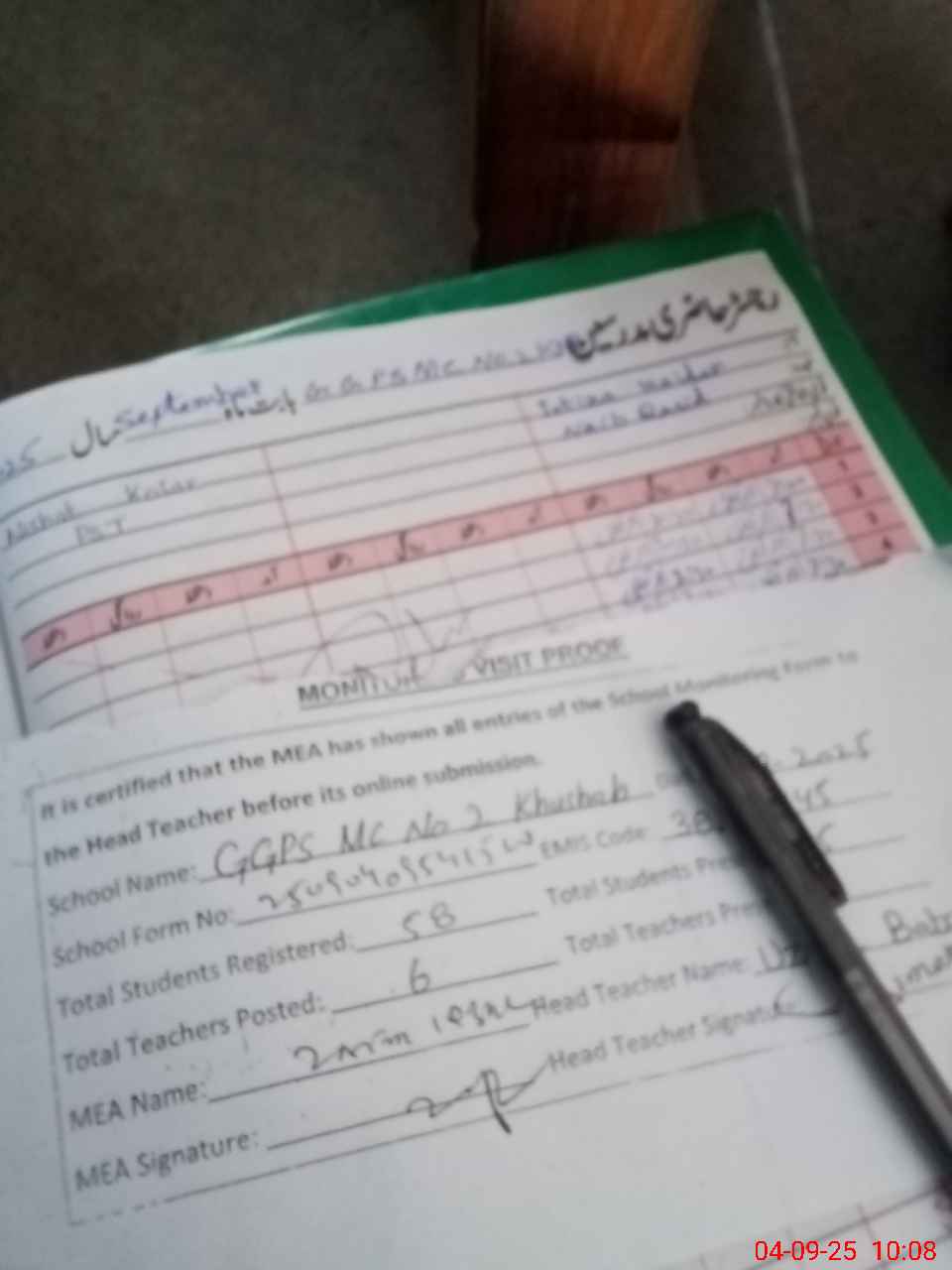 | EMIS Code: 38210545 | Name of School: GGPS MC NO.2 KHUSHAB | |||