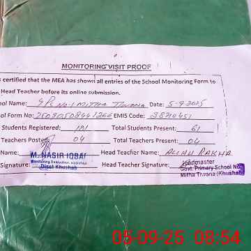 | EMIS Code: 38210451 | Name of School: GPS NO. 1 MITHA TIWANA | |||