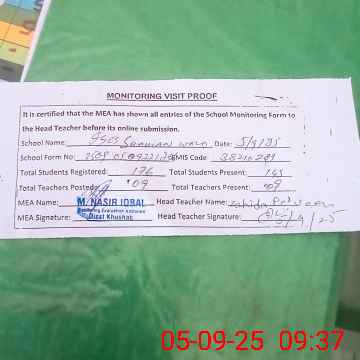 | Attendance Register | Head Teacher | MEA with School | Visit Proof |