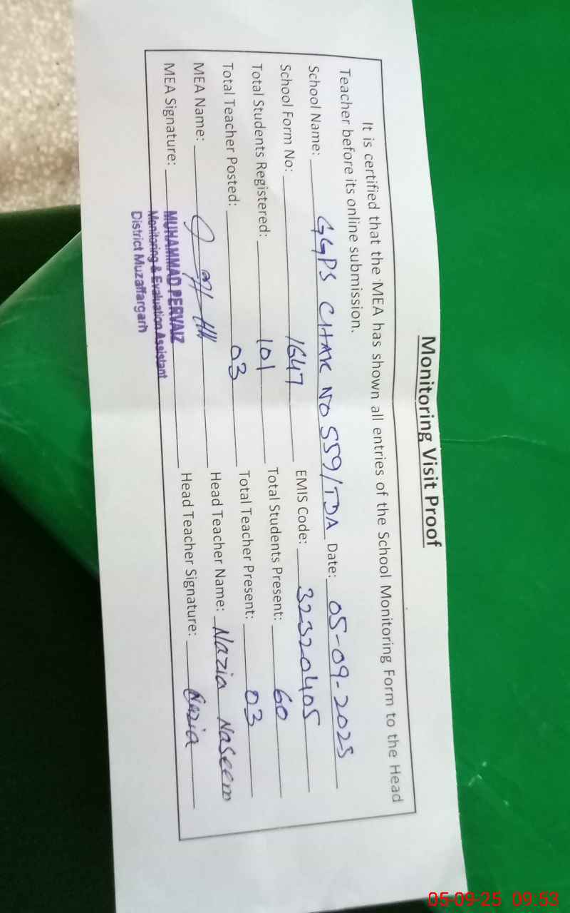 | EMIS Code: 32320405 | Name of School: GGPS CHAK NO. 559 TDA | |||