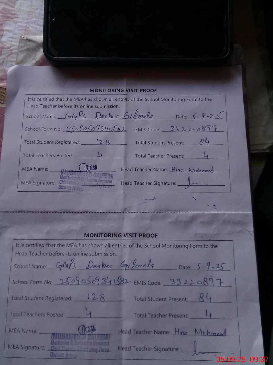 | EMIS Code: 33220897 | Name of School: GGPS DARBAR GILMALA | |||