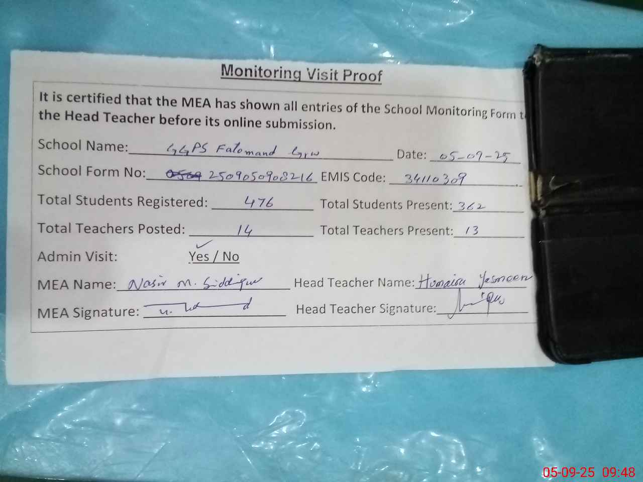 | EMIS Code: 34110309 | Name of School: GGPS FATOMAND GUJRANWALA | |||