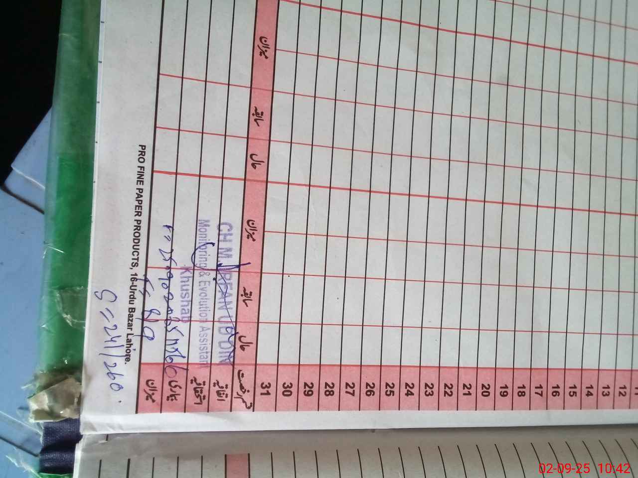 | CNIC | Full Name | Designation | R/C | Absence During Last Calender Month |