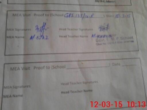 | Attendance Register | Head Teacher | MEA with School | Visit Proof |