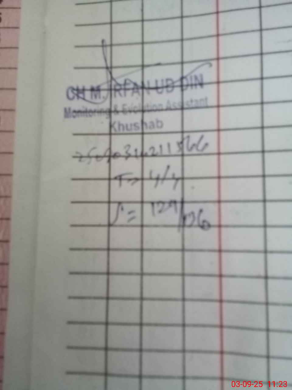 | Name: MU**** HA**** Designation: (School Headmaster's/Headmistress's) P ST Phone/Cell Number: 03**** |