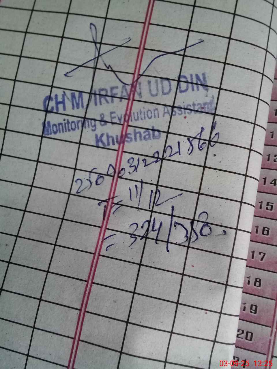 | District: KHUSHAB | Tehsil: QUAIDABAD | Markaz: CHAK NO 22/MB (FEMALE) | Level: High | |