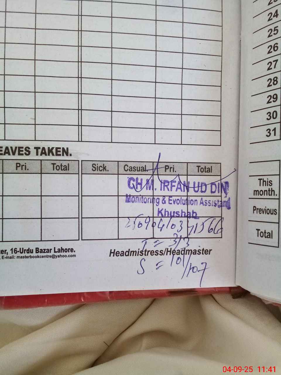 | Attendance Register | Head Teacher | MEA with School | Visit Proof |