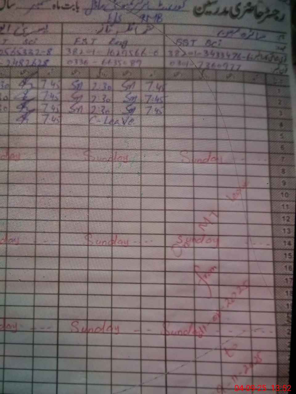| Name: Sa**** Mu**** Designation: (School Headmaster's/Headmistress's) Est Sci Math Phone/Cell Number: 03**** |