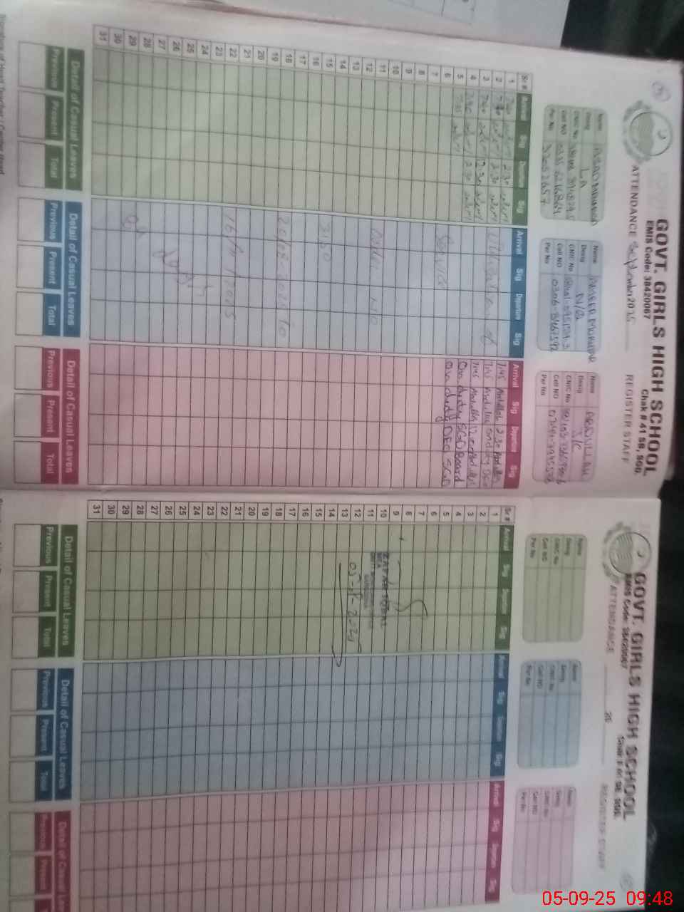 | Name: SA**** BA**** Designation: (School Headmaster's/Headmistress's) I/C SST (Science) Phone/Cell Number: 03**** |