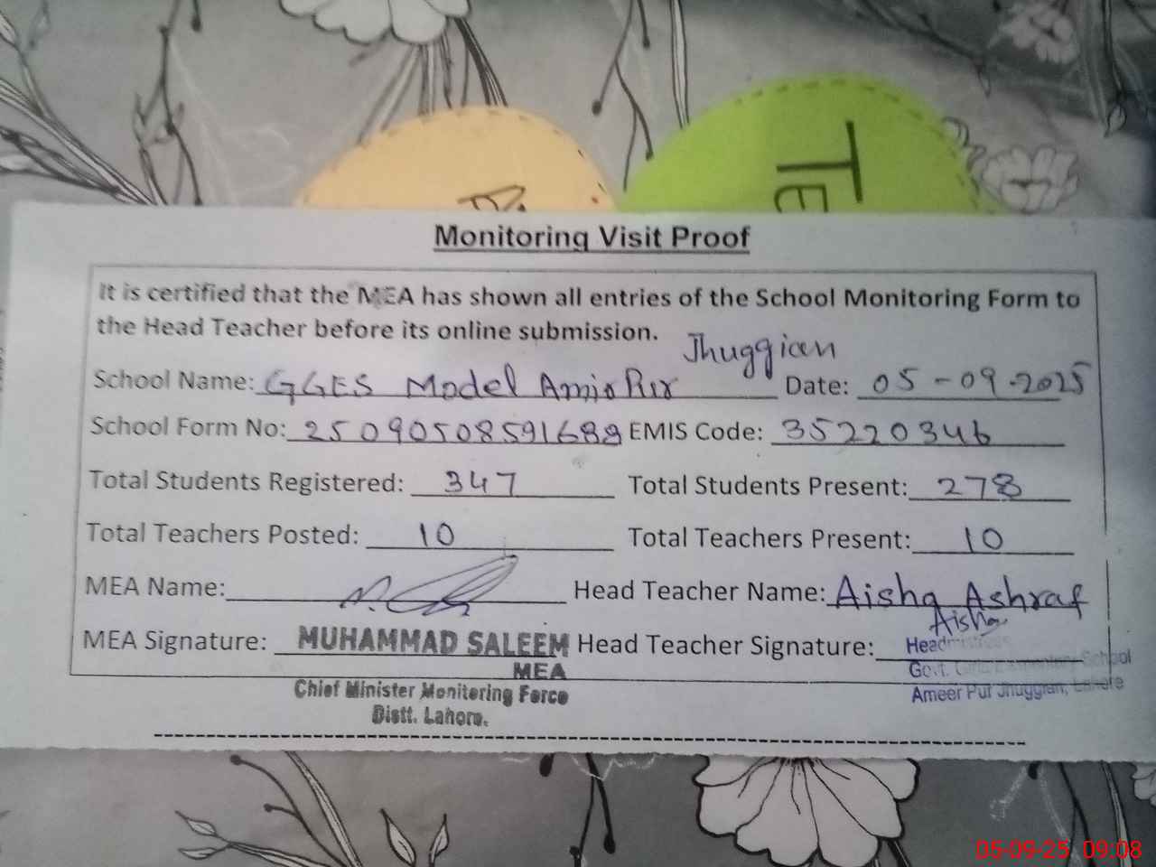 | EMIS Code: 35220346 | Name of School: GGES MODEL AMIR PUR JHUGGIAN | |||
