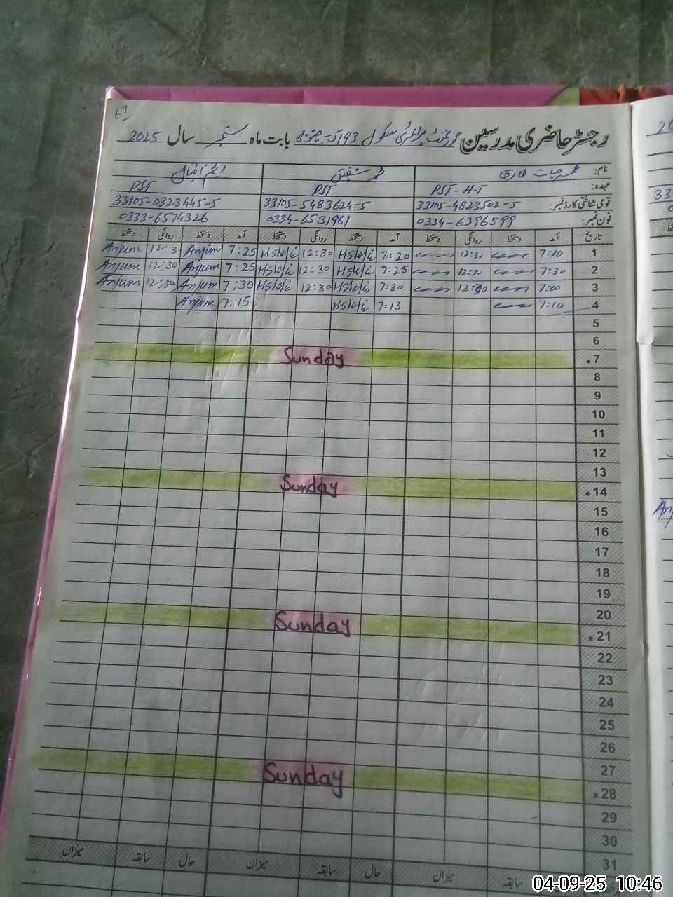 | Name: UM**** HA**** TA**** Designation: (School Headmaster's/Headmistress's) PST Phone/Cell Number: 03**** |