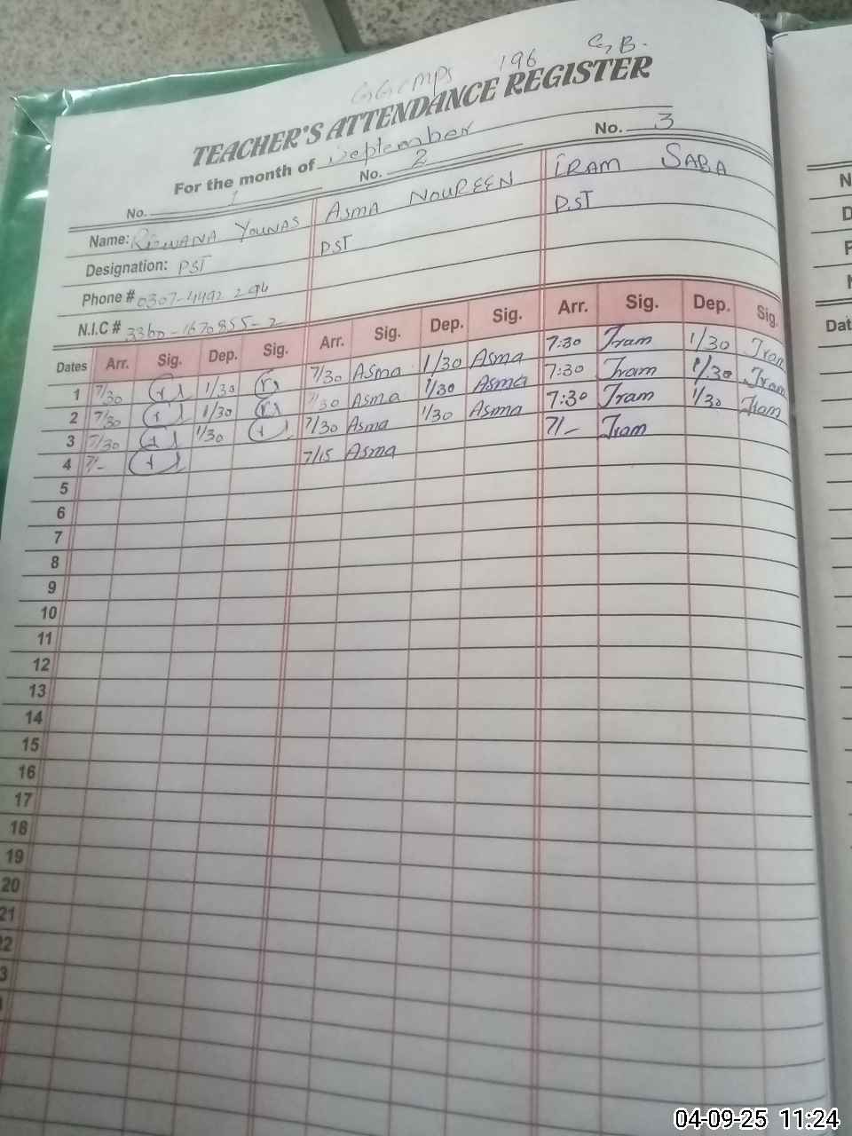 | Name: SA**** CH**** Designation: (School Headmaster's/Headmistress's) PST Phone/Cell Number: 03**** |