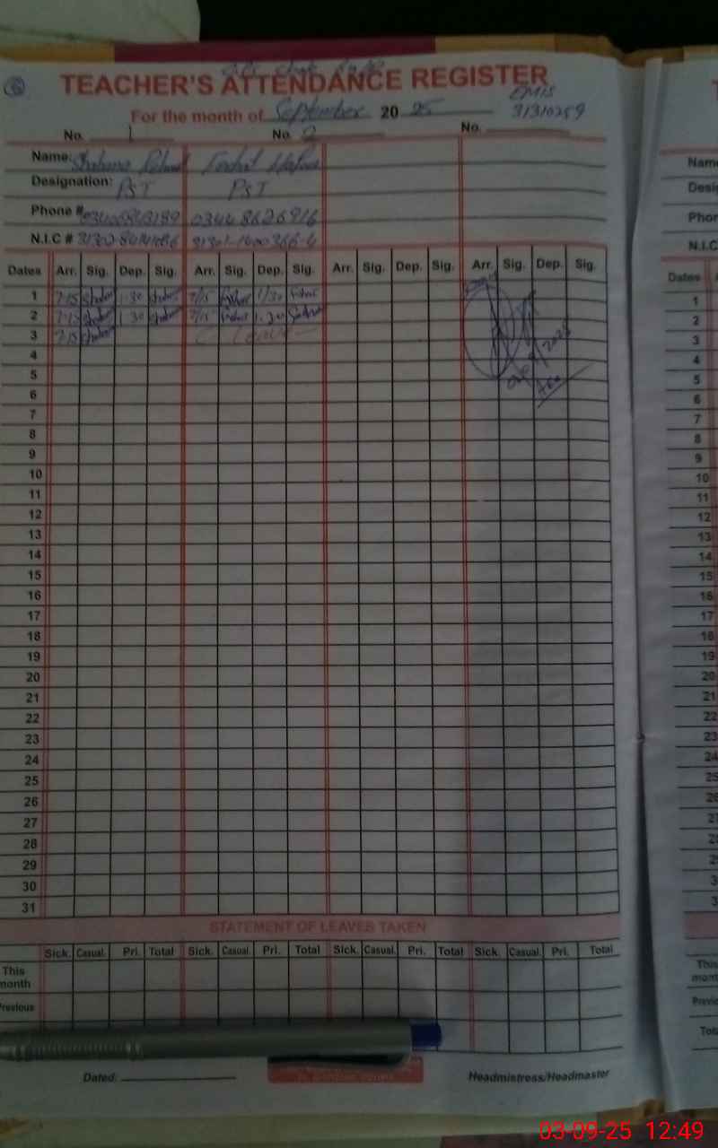 | Name: Fa**** Ha**** Designation: (School Headmaster's/Headmistress's) PST Phone/Cell Number: 03**** |