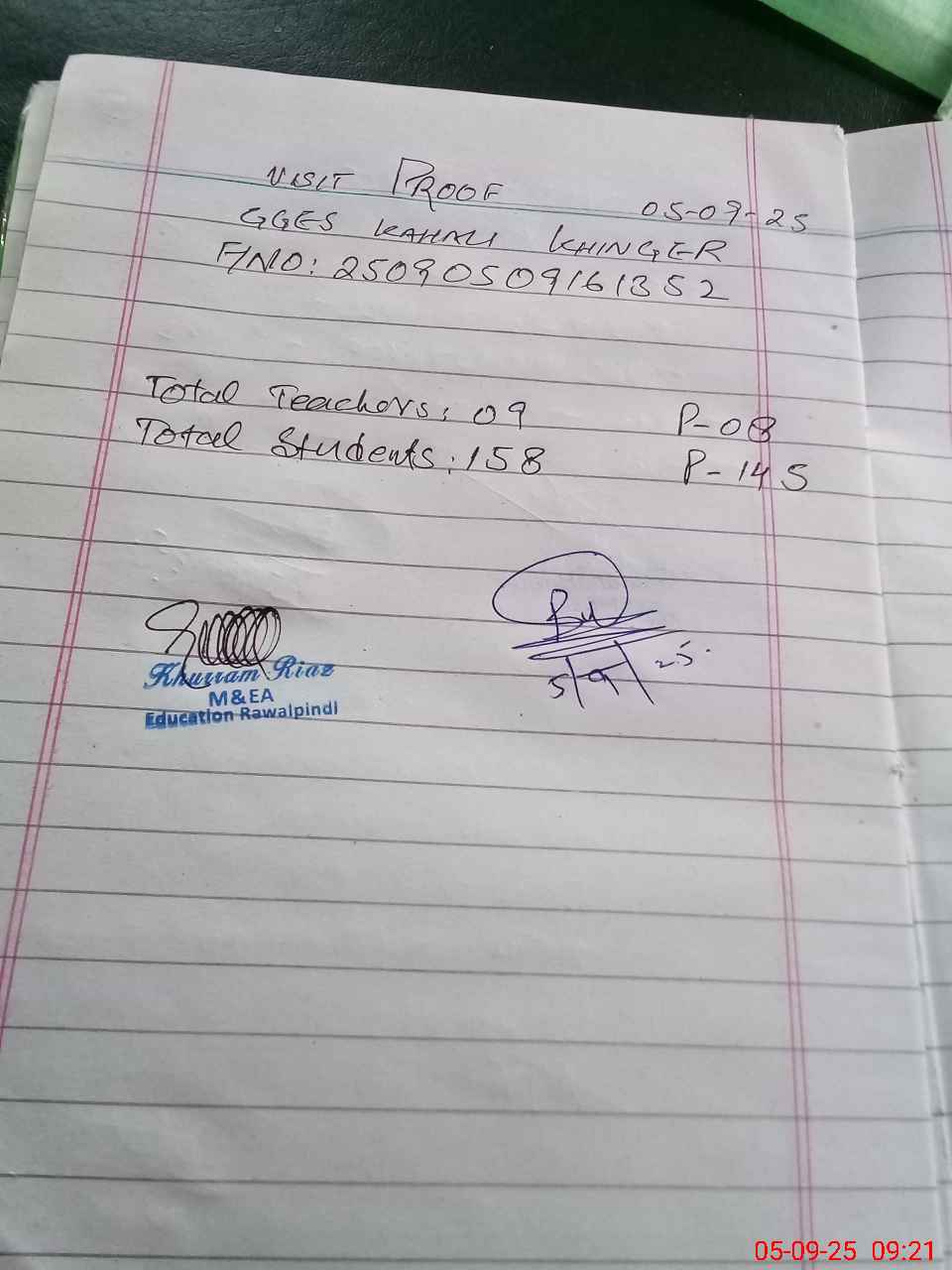 | Attendance Register | Head Teacher | MEA with School | Visit Proof |