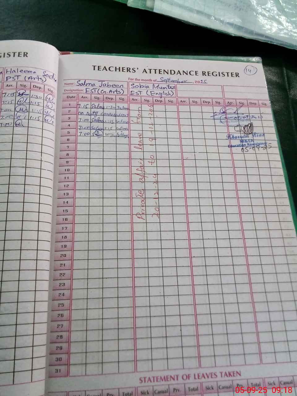 | Leave | Duty | Absent | Maternity | Medical | Ex- Pak |