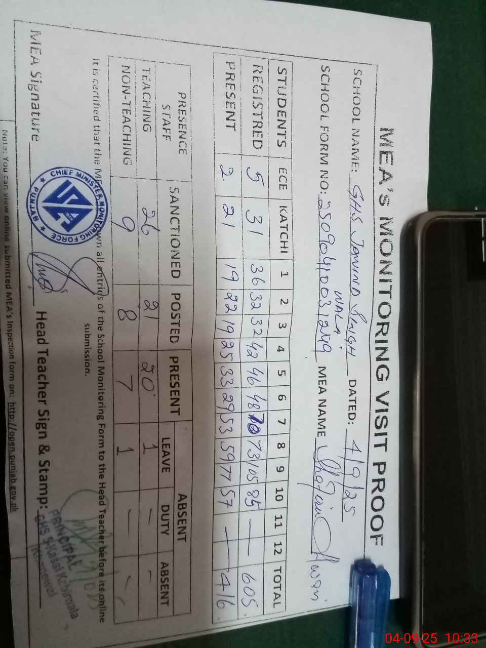 | EMIS Code: 36410013 | Name of School: GHS JAWIND SINGH WALA, KABIRWALA | |||