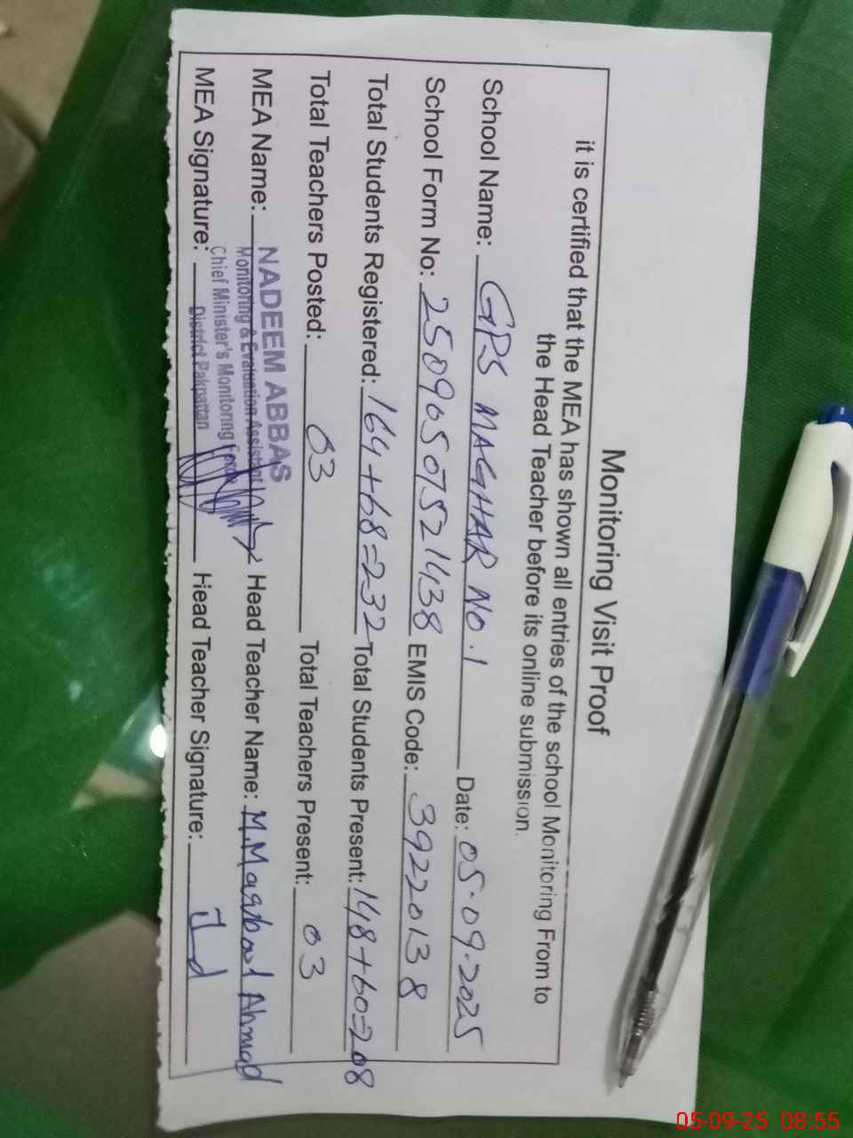 | EMIS Code: 39220138 | Name of School: GPS MAGHER NO. 1 | |||