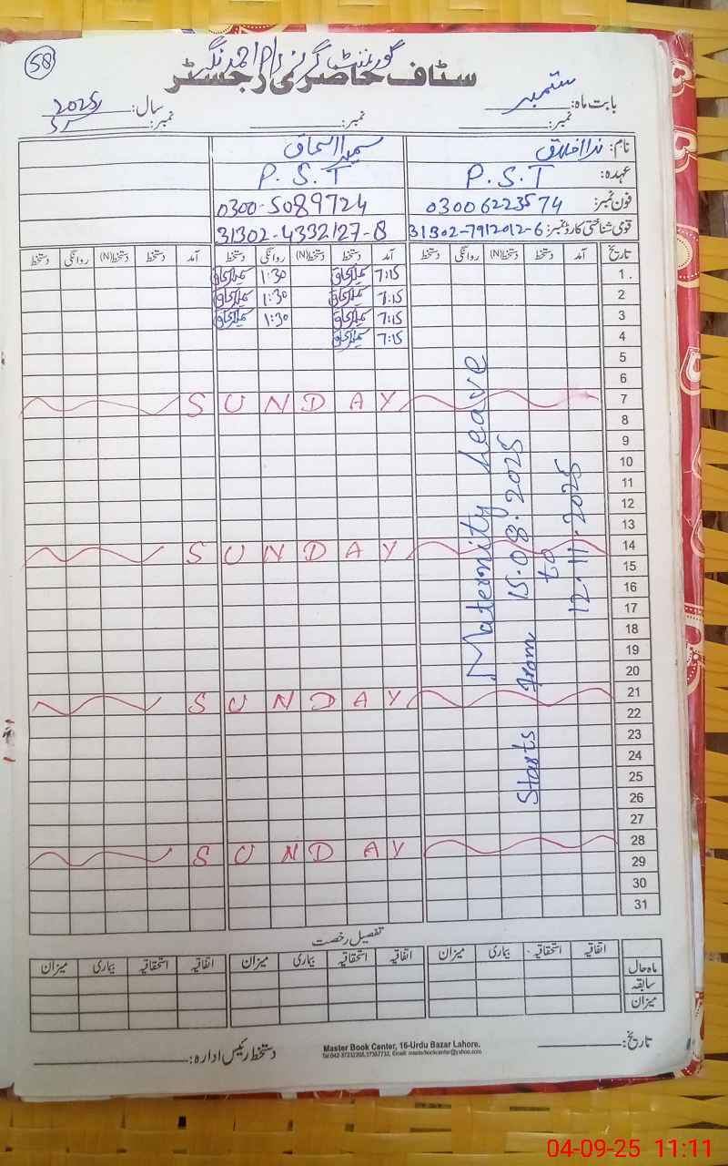 | Name: NI**** AK**** Designation: (School Headmaster's/Headmistress's) PST Phone/Cell Number: 03**** |