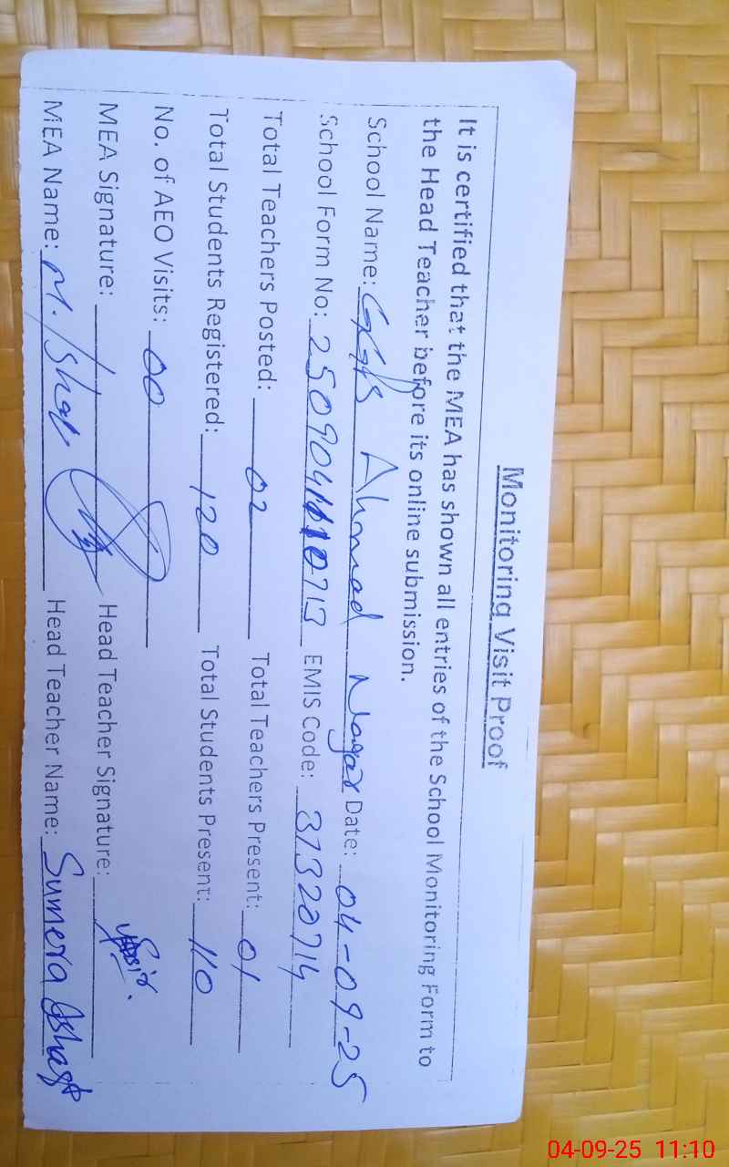 | EMIS Code: 31320714 | Name of School: GGPS AHMAD NAGAR | |||