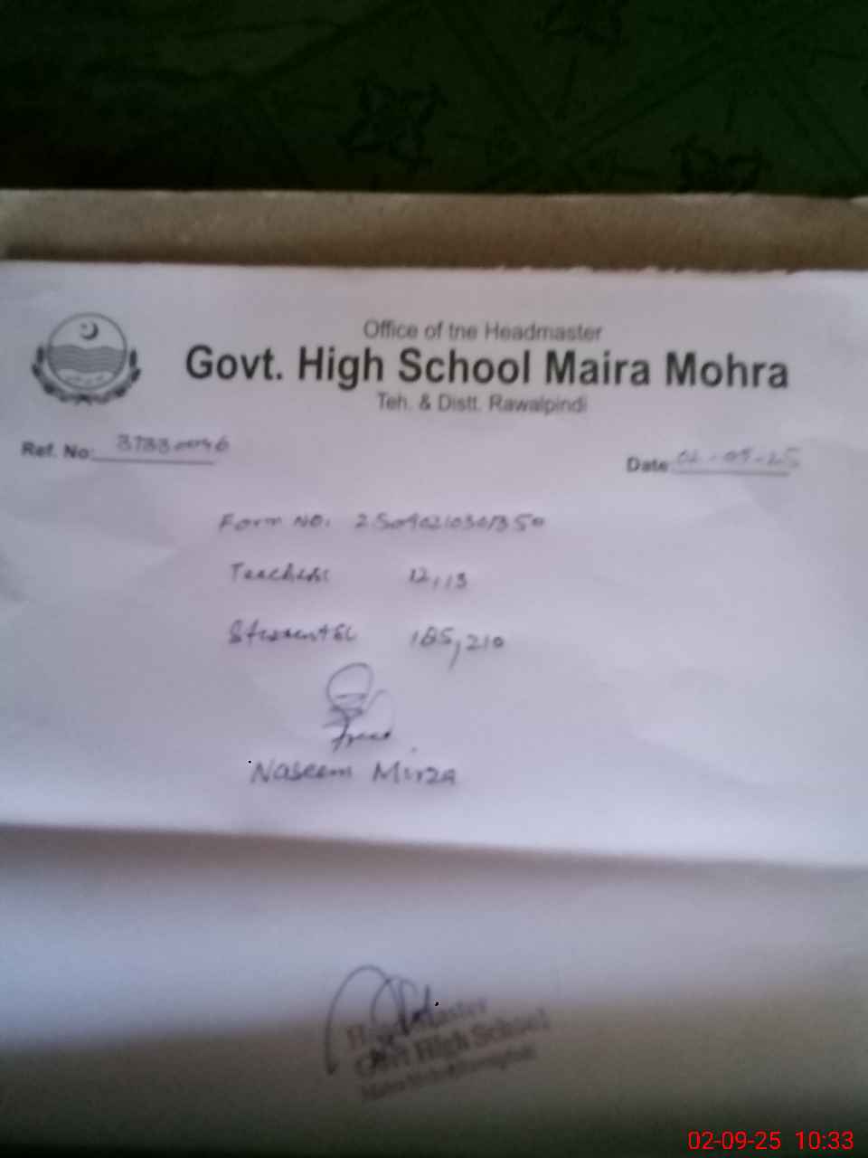 | EMIS Code: 37330046 | Name of School: GHS MIRA MOHRA | |||