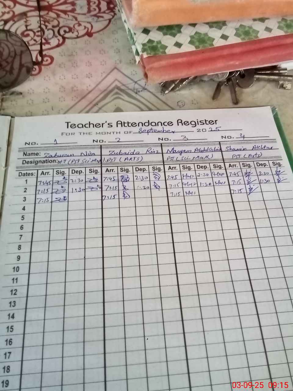 | Name: Za**** Ni**** Designation: (School Headmaster's/Headmistress's) PST Phone/Cell Number: 03**** |