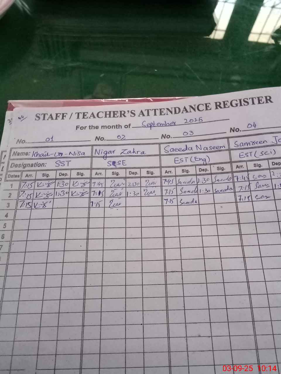 | Monitoring Date: 03-09-2025 | Start Time: 03-09-2025 09:34 AM | End Time: 03-09-2025 10:17 AM | Name of MEA: Na**** Sh**** | |
