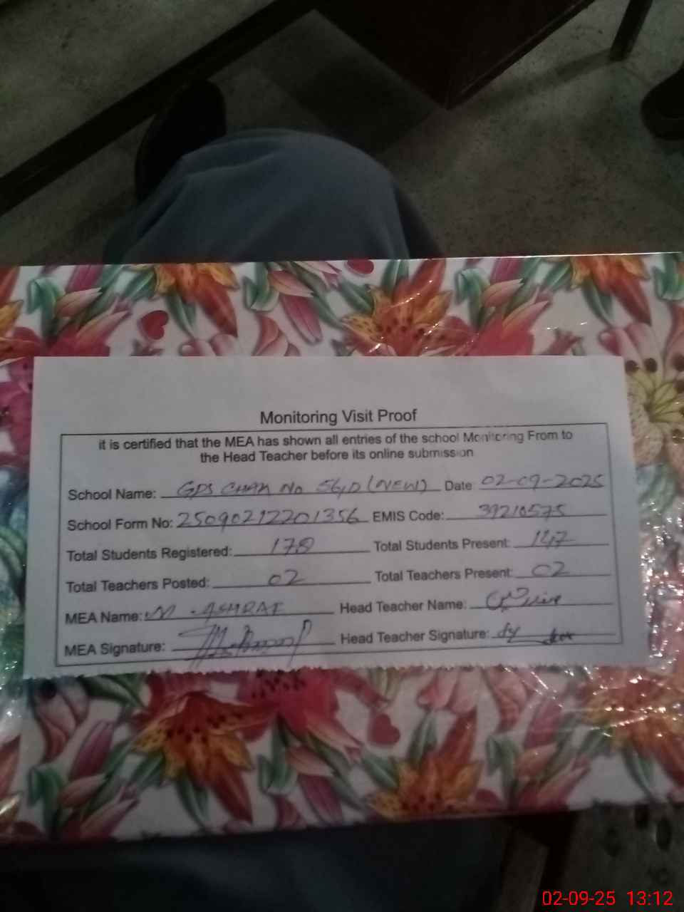 | EMIS Code: 39210575 | Name of School: GPS CHAK NO. 56/D (NEW) | |||