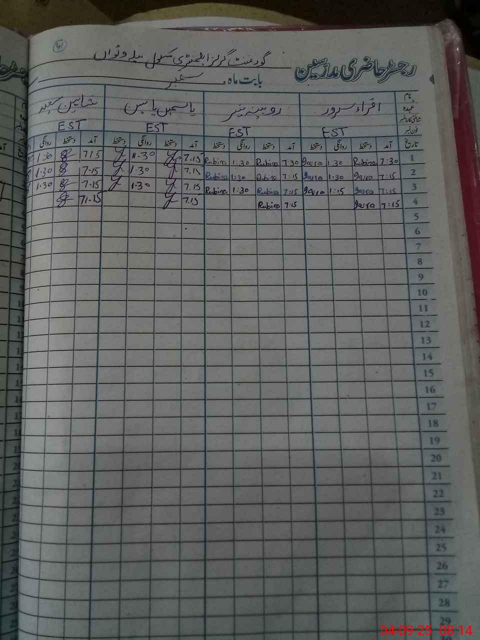 | Name: Ru**** Mu**** Designation: (School Headmaster's/Headmistress's) EST Phone/Cell Number: 03**** |
