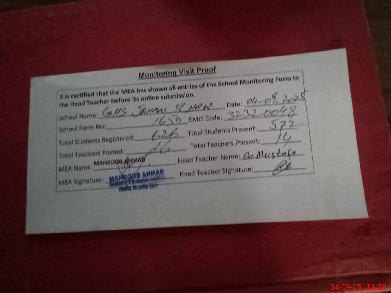 | EMIS Code: 32320048 | Name of School: GHS JAHAN KHAN | |||
