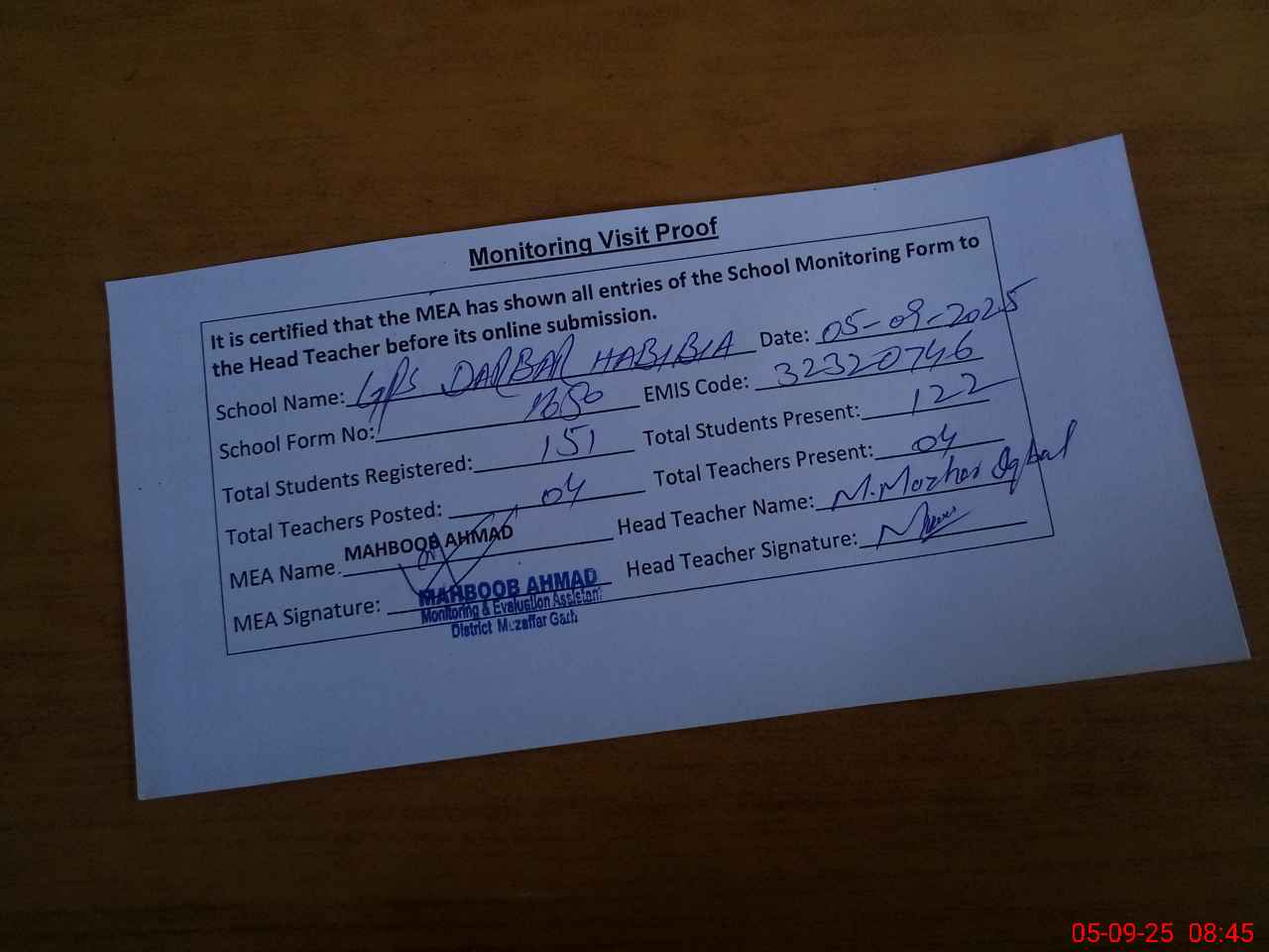 | EMIS Code: 32320746 | Name of School: GPS DARBAR HABEBIA | |||