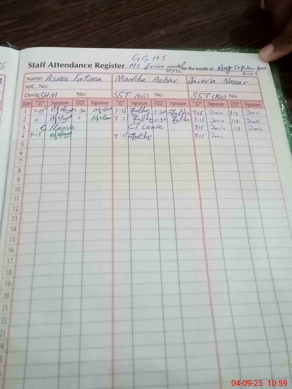 | Name: AS**** FA**** Designation: (School Headmaster's/Headmistress's) HEADMISTRESS Phone/Cell Number: 03**** |