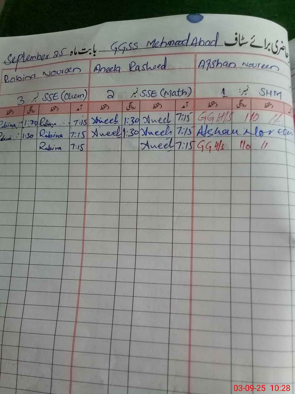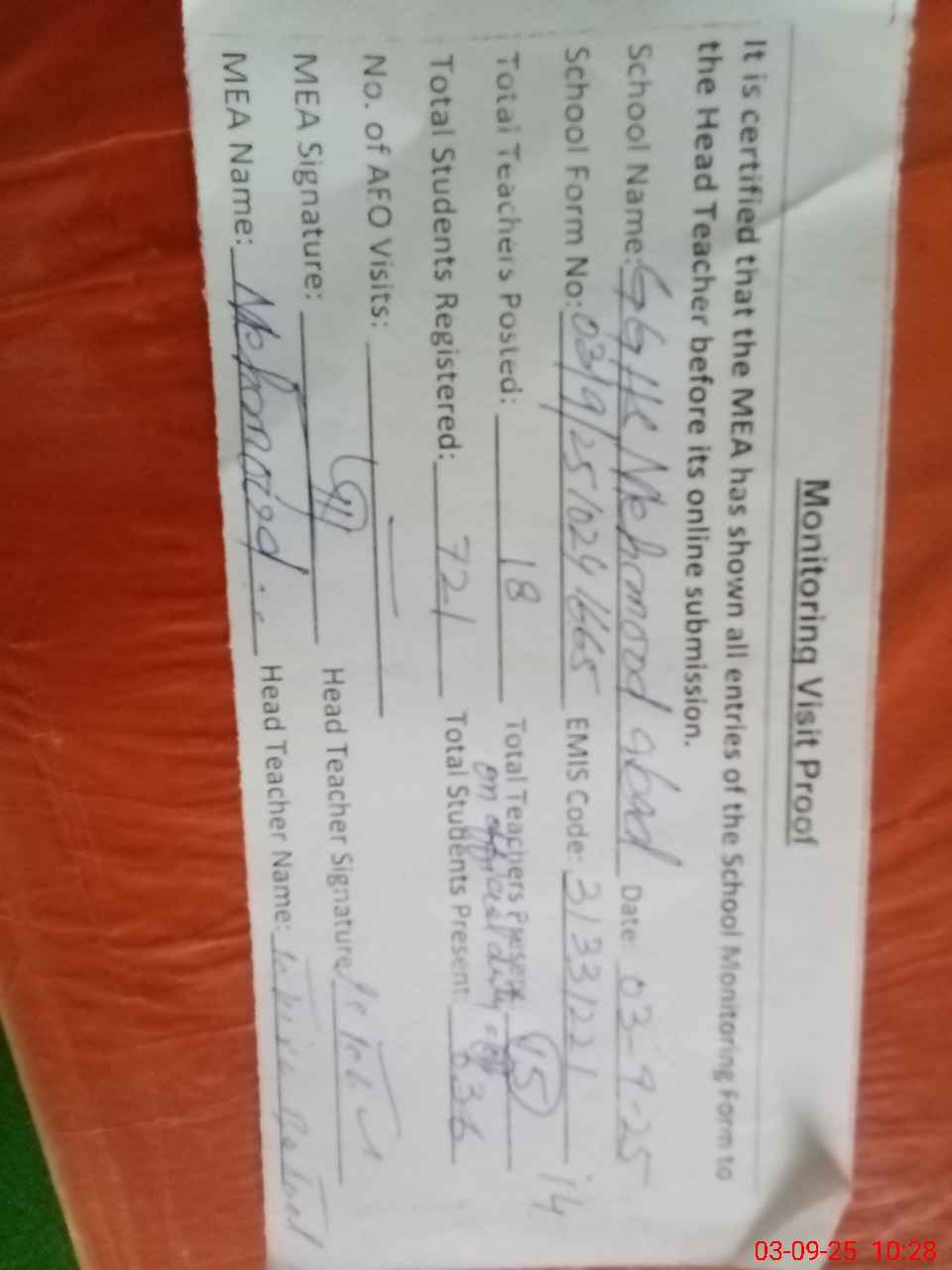 | EMIS Code: 31331221 | Name of School: GGHS MEHMOOD ABAD | |||