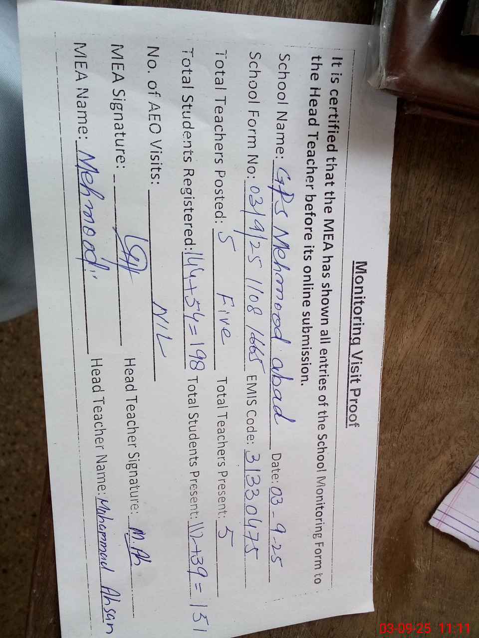| EMIS Code: 31330475 | Name of School: GPS MAHMOOD ABAD | |||