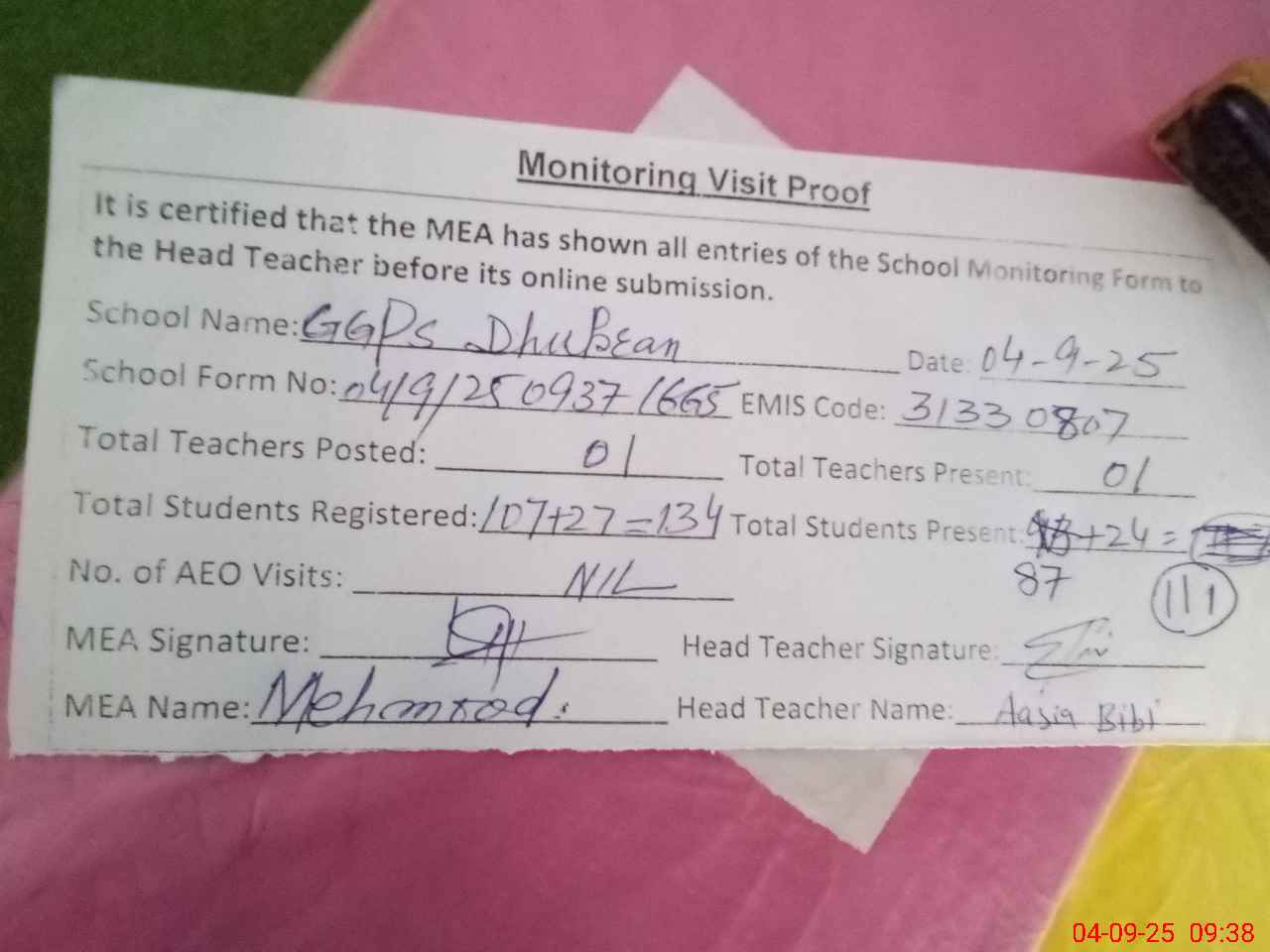 | EMIS Code: 31330807 | Name of School: GGPS MUZA DHUKRAN | |||