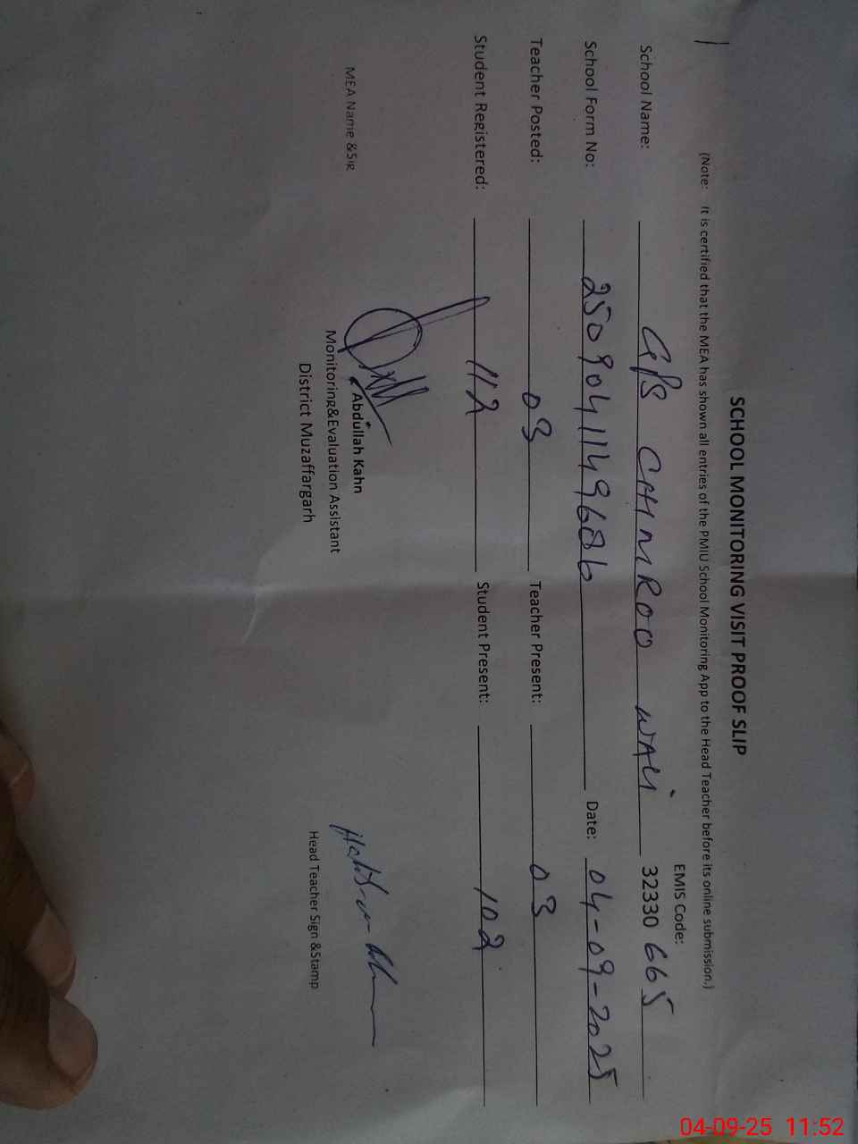 | EMIS Code: 32330665 | Name of School: GPS CHIMROO WALI | |||