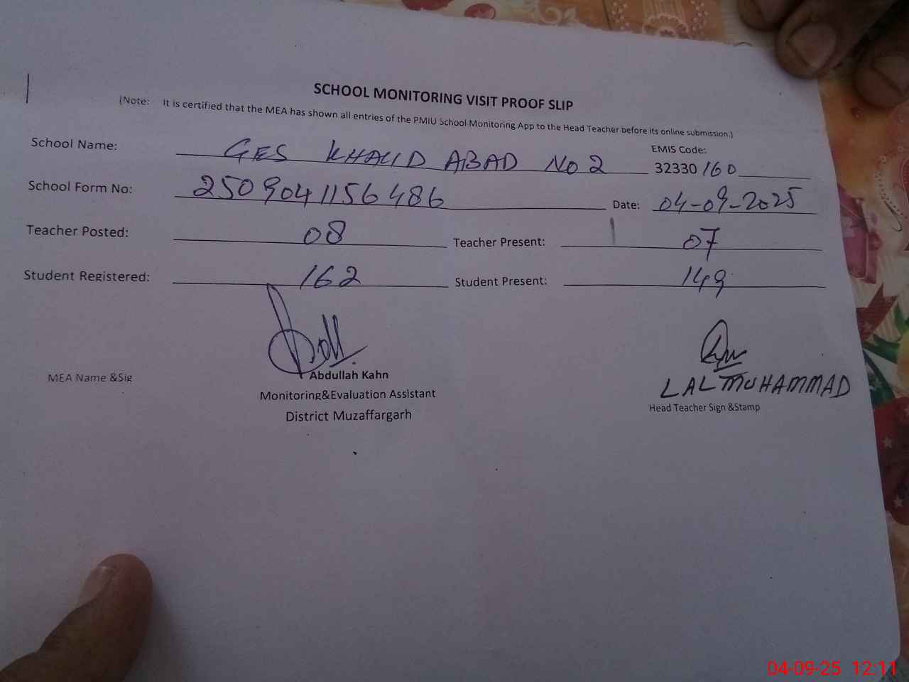 | EMIS Code: 32330160 | Name of School: GES KHALID ABAD NO 2 | |||