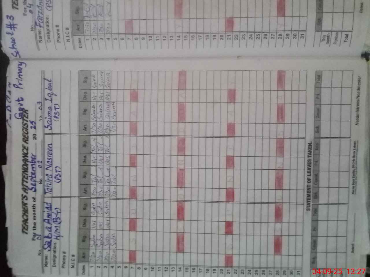 | Name: SA**** AM**** Designation: (School Headmaster's/Headmistress's) PST Phone/Cell Number: 03**** |