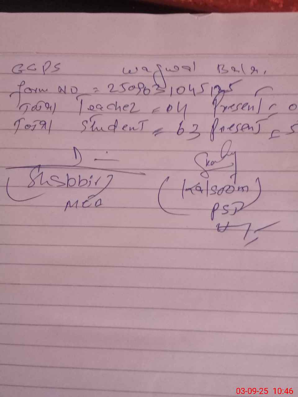 | EMIS Code: 37430149 | Name of School: GGPS WAGHWAL BALA | |||