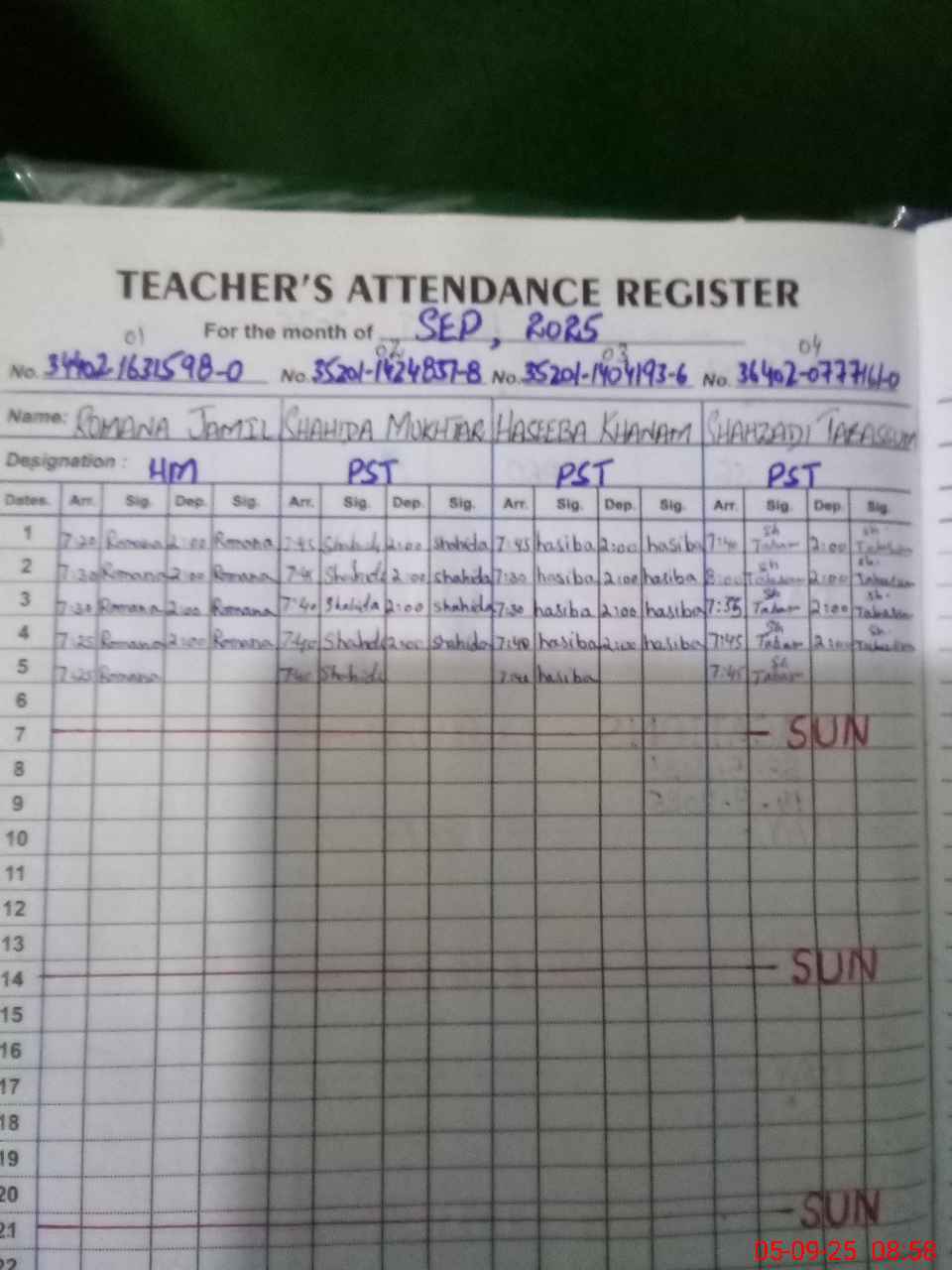 | CNIC | Full Name | Designation | R/C | Absence During Last Calender Month |