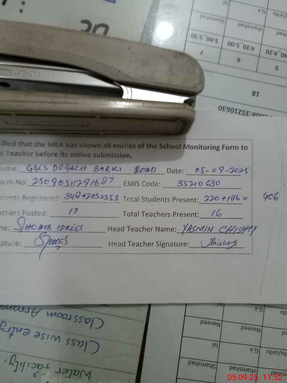 | EMIS Code: 35210630 | Name of School: GGES DOGACH, BARKI ROAD LAHORE | |||