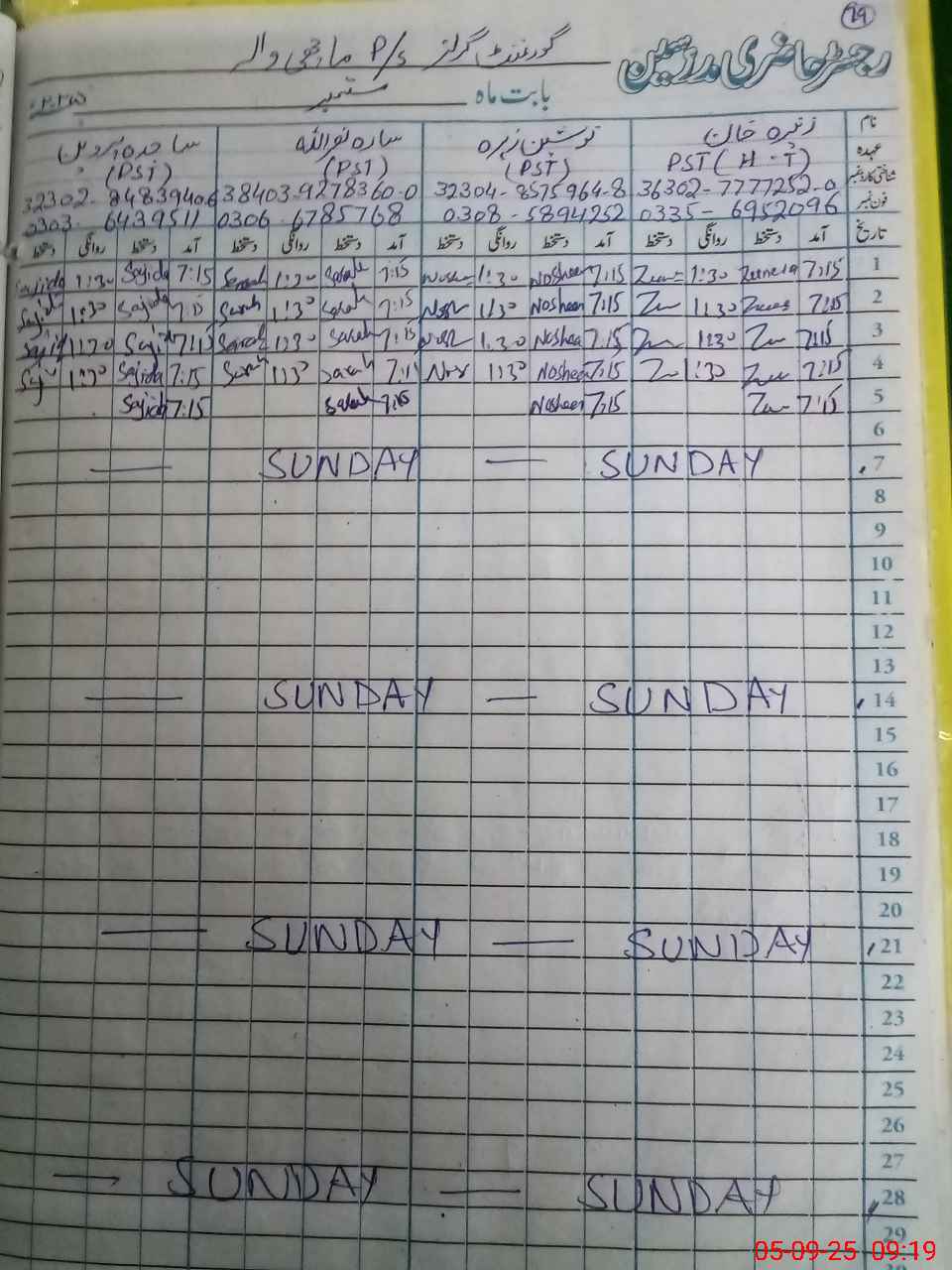 | Name: Zu**** Kh**** Designation: (School Headmaster's/Headmistress's) PST Phone/Cell Number: 03**** |