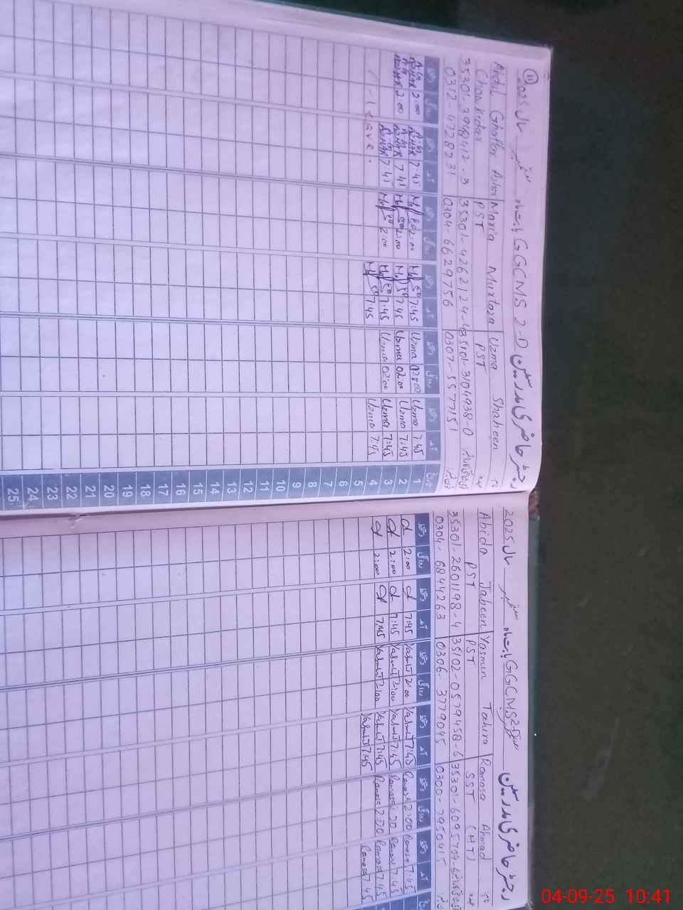 | CNIC | Full Name | Designation | R/C | Absence During Last Calender Month |